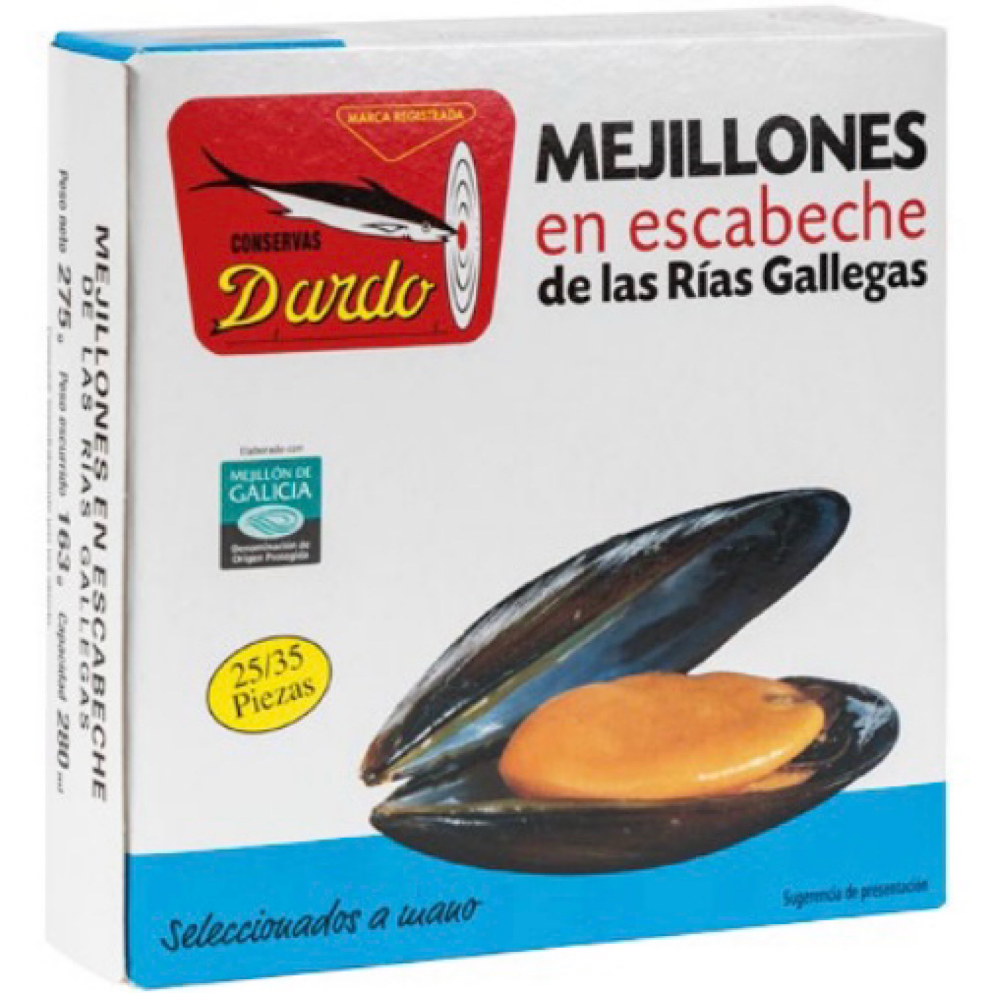 Mejillones En Escabeche De Las Rías Gallegas CONSERVAS DARDO 25/35 Piezas 275g7,99 €Añadir al carrito