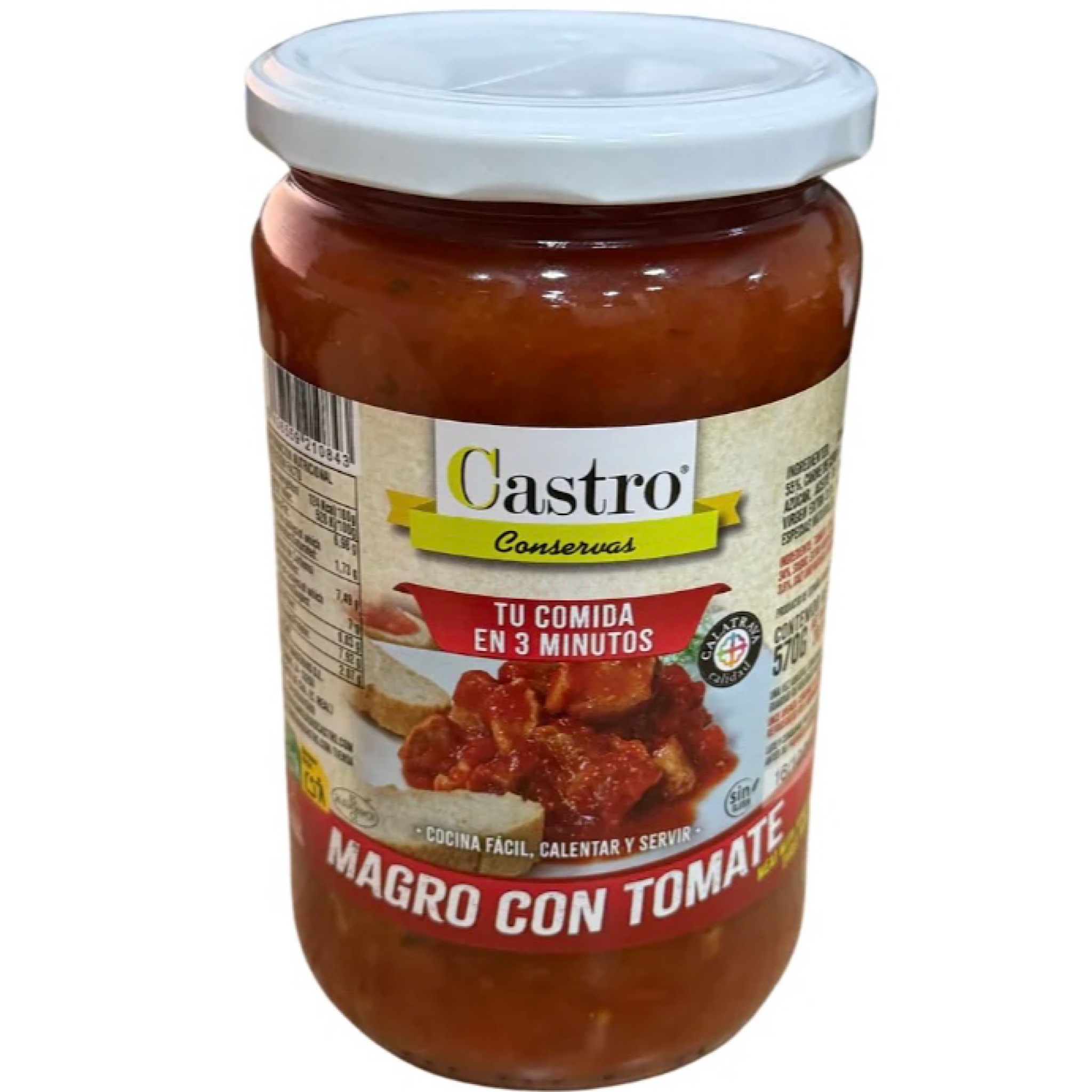 Costilla adobada (36%) (costilla de cerdo (94%), aceite, sal y especias), agua, patata (20,5%) (patata y conservador (E-223)), puerro, calabacin, pimiento, aceite de oliva, zanahoria, cebolla, tomate frito, almidón de maiz, ajo y sal.