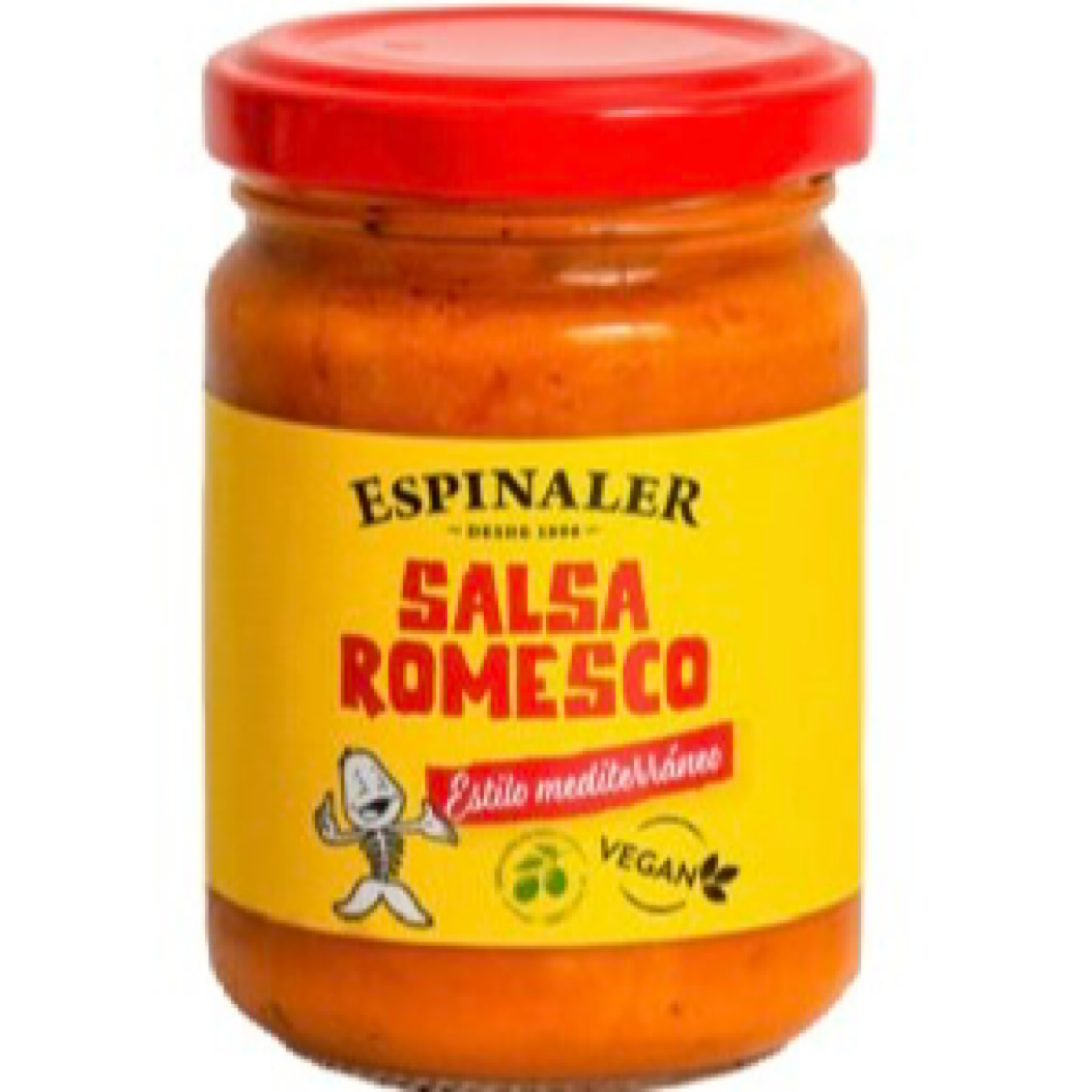 - Tomate entero pelado (63%) [tomate, jugo de tomate, sal, acidulante: ácido cítrico y endurecedor: cloruro cálcico], aceite de girasol refinado, pimiento de piquillo [pimiento del piquillo, agua, azúcar, sal, acidulante: ácido cítrico y endurecedor: cloruro cálcico]), cebolla, vino blanco, carne de pimiento choricero, azúcar, aceite de oliva suave, espesante: goma xantana, sal y ajo.